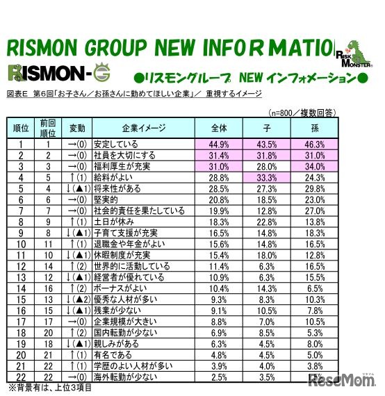 画像出典:リンクモンスター 子どもや孫に勤めてほしい企業ランキング・重視するイメージ