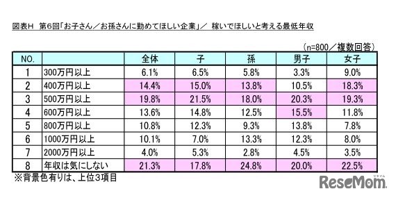 子どもや孫に稼いでほしいと考える最低年収