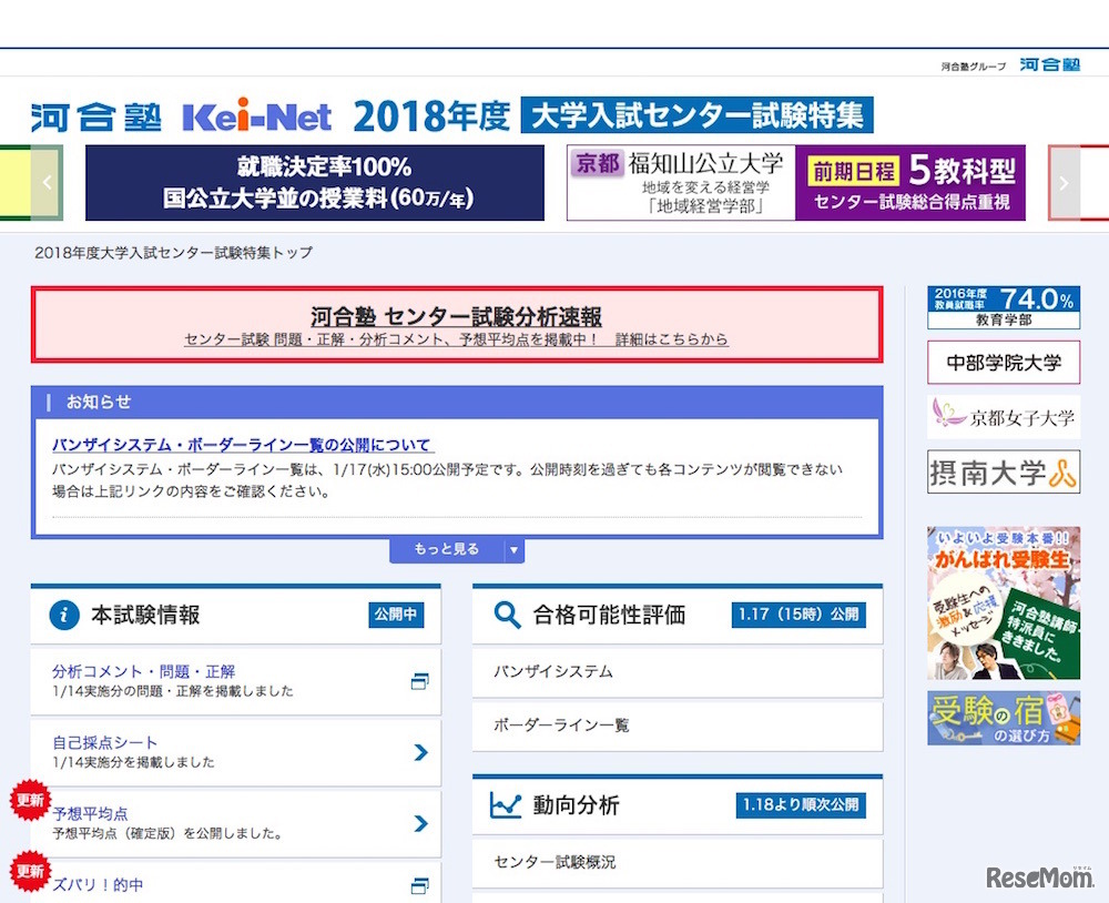 河合塾Kei-Net「2018年度センター試験特集」
