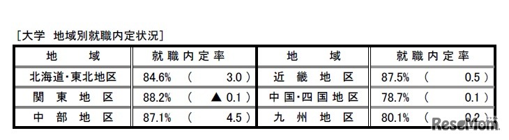 画像出典:厚生労働省・文部科学省「平成29年度大学・短期大学・高等専門学校および専修学校卒業予定者の就職内定状況調査(12月1日現在)について」 大学 地域別 「平成29年度大学・短期大学・高等専門学校および専修学校卒業予定者の就職内定状況調査(12月1日現在)について」