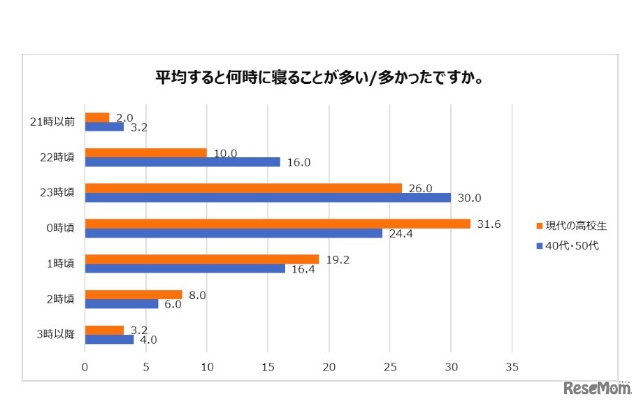平均すると何時に寝ることが多いか(多かったか)