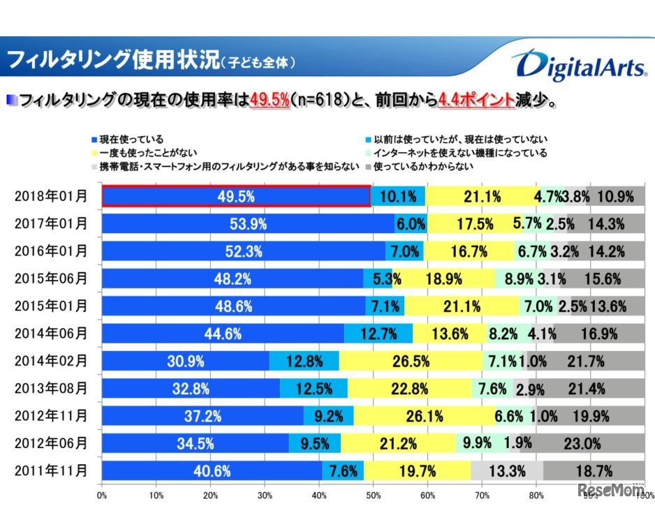 画像出典:デジタルアーツ「未成年者の携帯電話・スマホ利用実態調査」 フィルタリングの使用状況