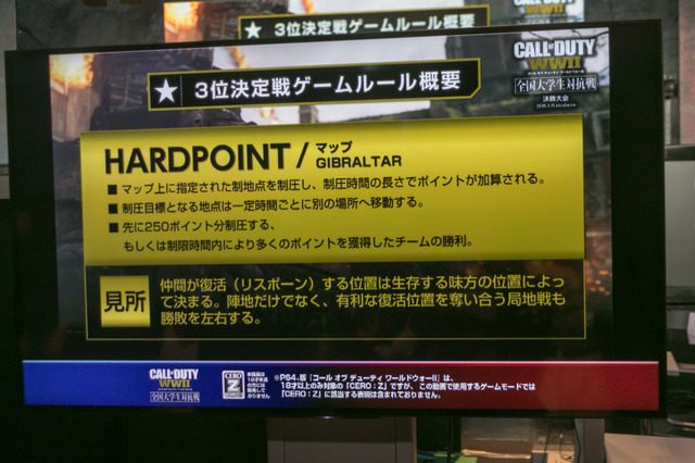 SIEJAが3月11日に、六本木のニコファーレにて人気FPS『Call of Duty: WWII』の大学対抗戦である「『コールオブデューティ ワールドウォーII』全国大学生対抗戦」を開催。白熱の試合となったこの大会のイベントレポートをお届けします。