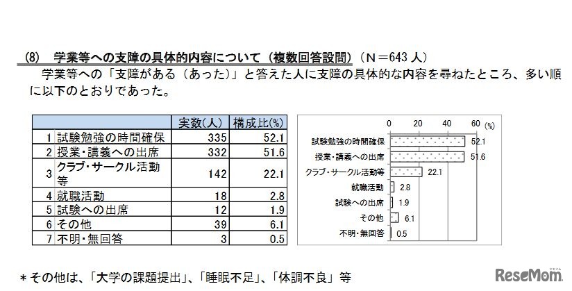 画像出典:京都ブラックバイト対策協議会 学業などへの支障の具体的内容