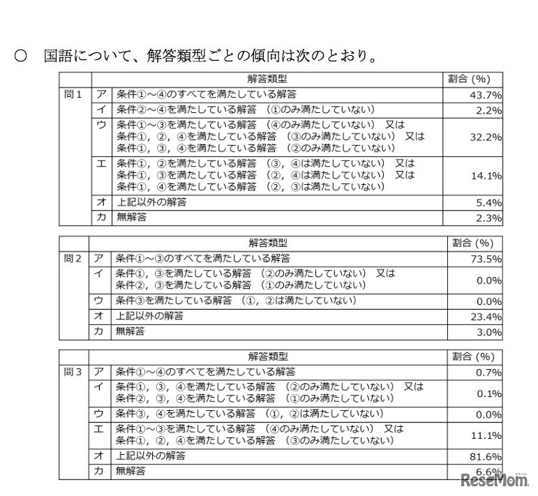 国語(記述式問題)の解答類型ごとの傾向