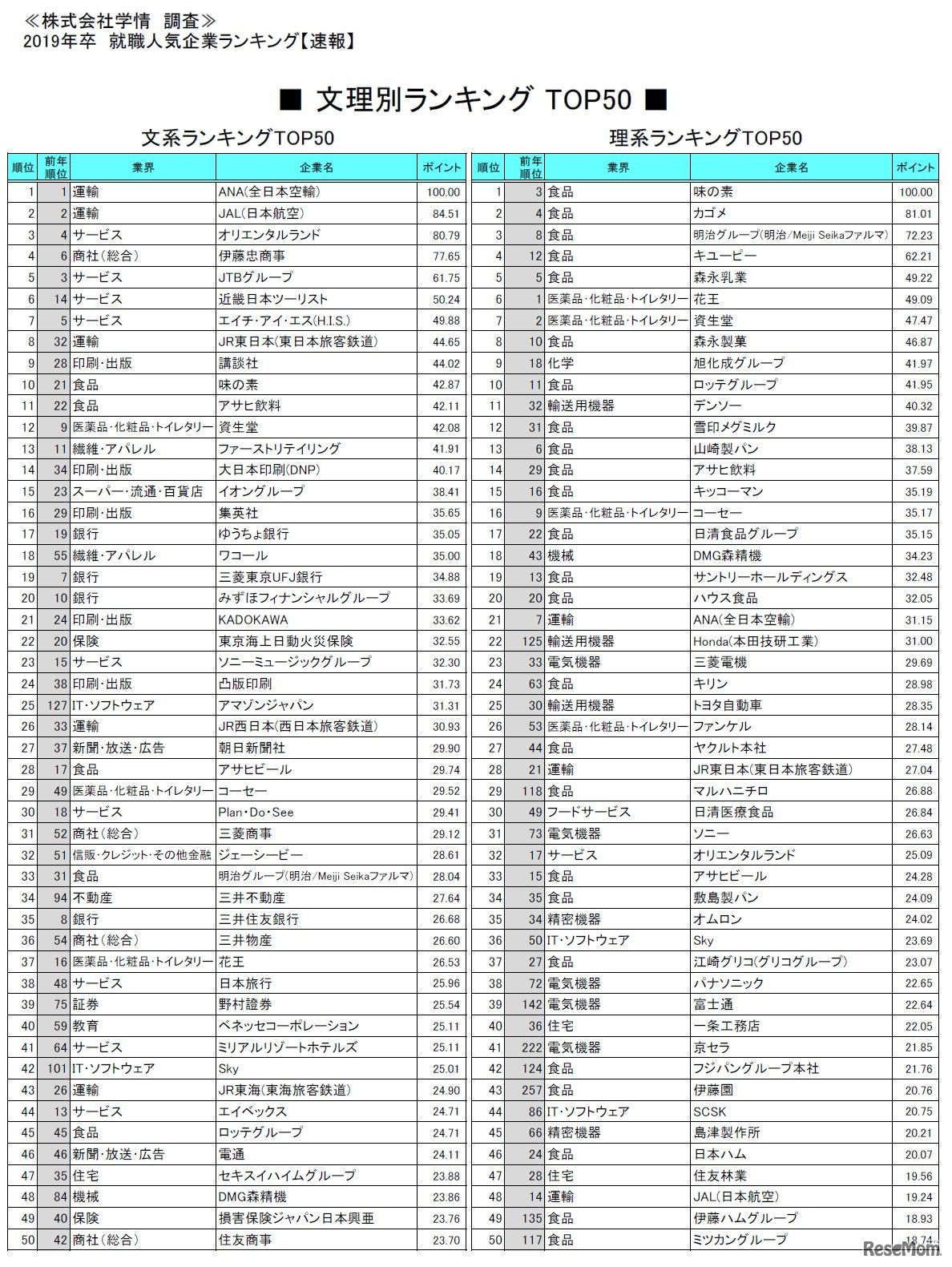 総合就職情報会社の学情が全国の2019年卒生を対象に実施した就職希望企業アンケートによると、総合1位は4年連続で「ANA」であることが明らかとなった。2位は「味の素」、3位は「JAL」で、航空業界の強さと食品業界の根強い人気が浮き彫りとなった。