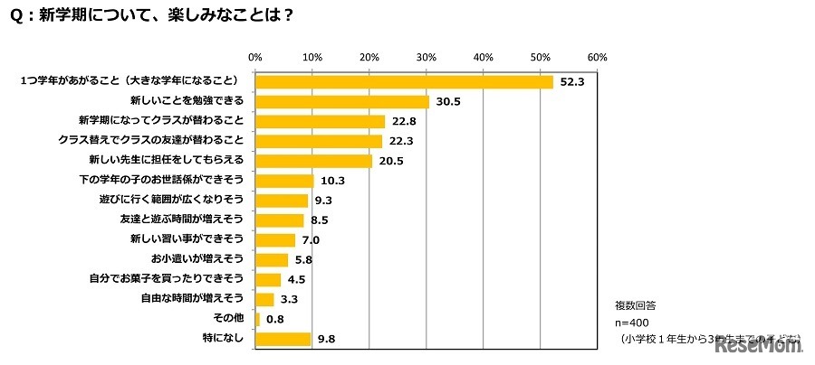 小学校1年生から3年生の73.8%が、新学期になることについて「楽しみな気持ちのほうが大きい」もしくは「どちらかといえば楽しみな気持ちのほうが大きい」と回答していることがクラシエフーズの調査結果により明らかになった。