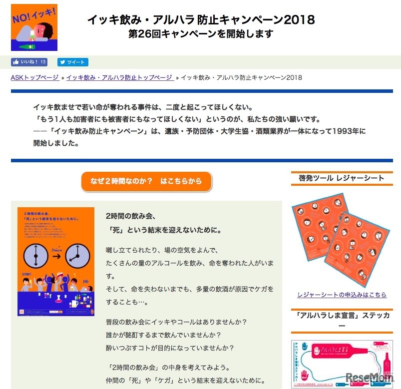 大学の入学式が終わり、新入生歓迎コンパシーズンを迎える。イッキ飲み防止連絡協議会は「イッキ飲み・アルハラ防止キャンペーン2018」の実施をスタートした。大学やサークル幹部ができることと、明治大学、東京大学の取組みを紹介する。