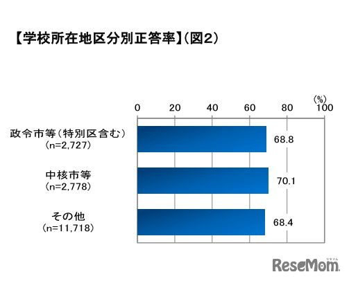 インターネット・リテラシーを測るテストの結果(学校所在地区分別正答率)