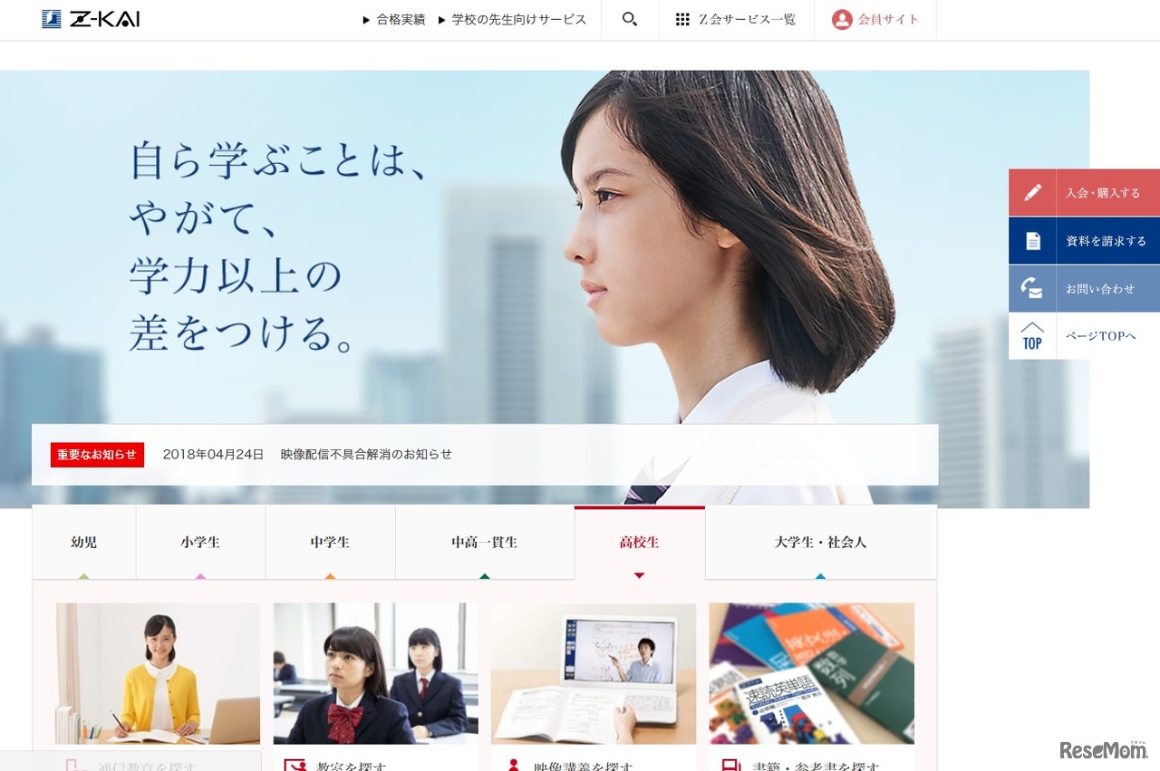 Z会は、講師×AI(人工知能)による「数学最速最短学習コース」を特別企画として本格的に開始する。対象は、高3生(受験生)・高2生・高1生・中学生(中高一貫)。80分の講座が4回で受講料は2万2,000円(税込)。