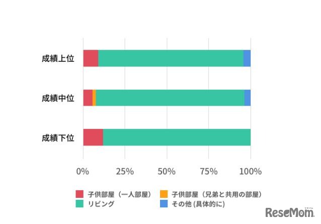 家庭学習を習慣にしている子どもは成績がよく、成績上位者では約7割が習慣化していることが2018年4月26日、中学受験の情報ポータルサイト「かしこい塾の使い方」のアンケート調査結果からわかった。家庭で勉強する場所は、「リビング」が最多だった。