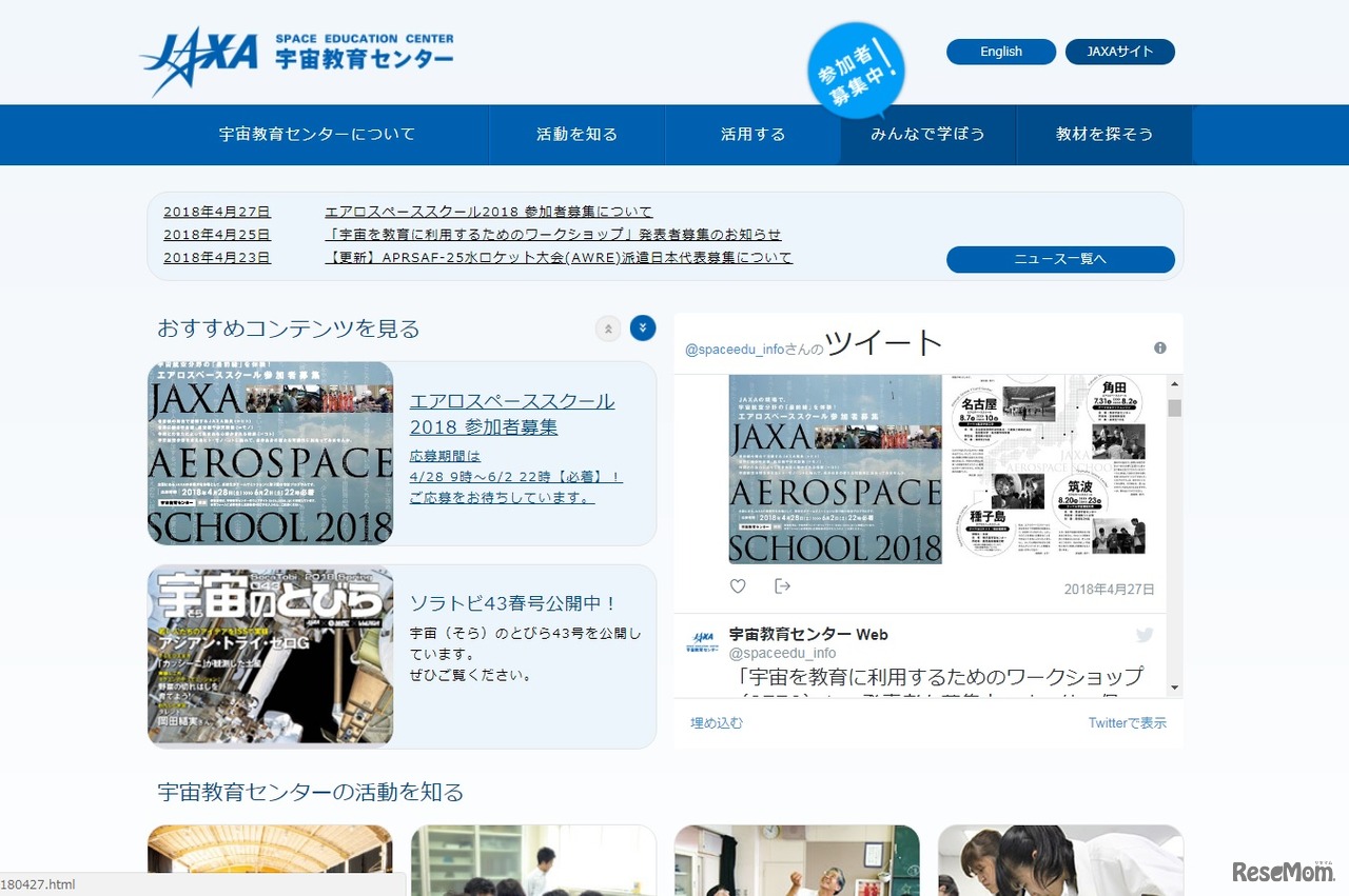 宇宙航空研究開発機構(JAXA)は、2018年7月より全国5会場で開催する宿泊プログラム「エアロスペーススクール2018」において、高校生を対象に参加者を募集している。申込みは、宇宙教育センターのWebサイトにて受け付けている。締切りは6月2日午後10時(必着)。