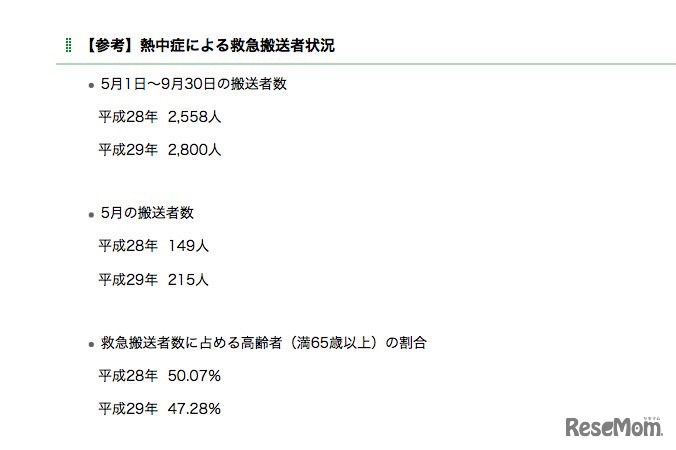 埼玉県は平成30年4月27日、Webサイトに「熱中症予防5つのポイント」を掲載。熱中症は夏だけでなく、体が気温の上昇に慣れていない春にも発生することがあるため、水分をこまめに補給するなど暑くなる日は注意するよう呼びかけている。