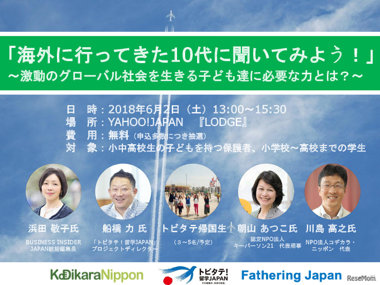 「コヂカラ・ニッポン」は2018年6月2日、東京ガーデンテラス紀尾井町内のYahoo!Japan LODGEにて、留学に関心のある10代の児童生徒・学生や保護者向けにその意義や魅力をリアルに伝えるイベントを開催する。