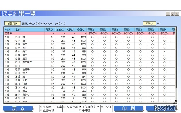 NEC「テスト採点支援ソリューション」 採点結果一覧