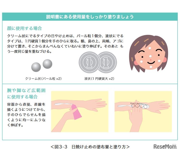 画像出典:環境省「紫外線環境保健マニュアル2015」 日焼け止めの塗布量と塗り方