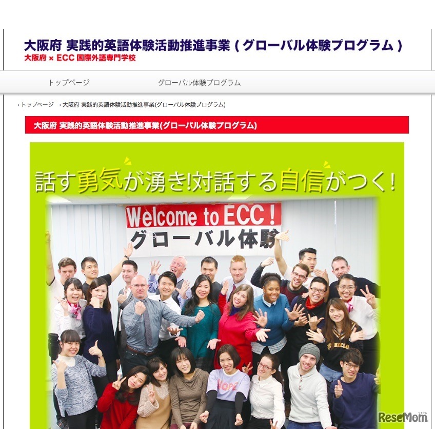 大阪府は2018年5月9日、「グローバル体験プログラム」の募集を開始した。英語の習得意欲向上を目的としたプログラムで、2018年度は府内の高校生に加えて中学3年生も対象とし、全体で2,000人を受け入れる。参加費は無料で、実施期間は5月19日~2019年2月22日。