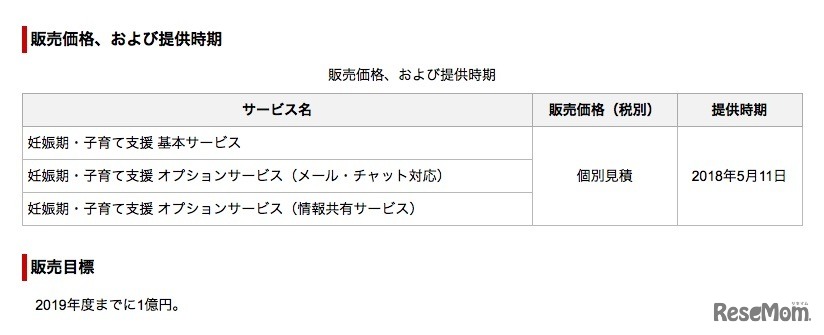 画像出典:富士通 「妊娠期・子育て支援サービス」の価格・提供時期など