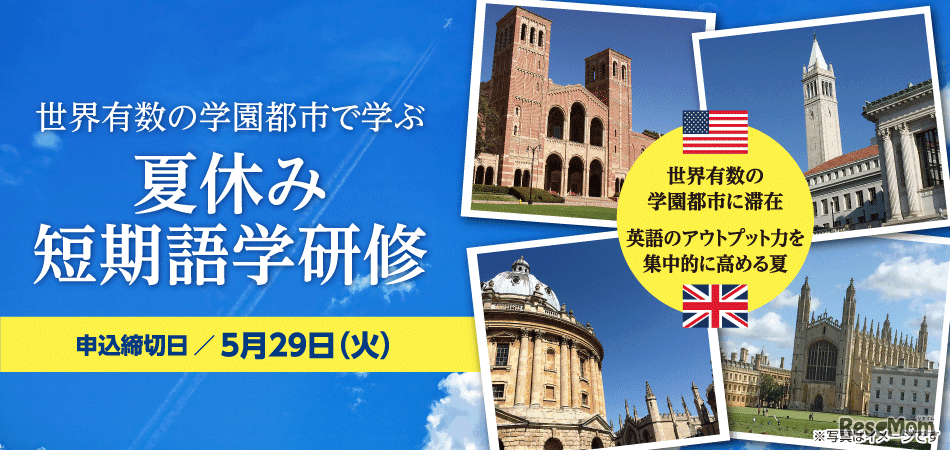 Z会は2018年5月13日、「世界有数の学園都市で学ぶ夏休み短期語学研修」の参加を検討している中高生に向けて、個別相談会を開催する。語学研修コースは、「米国UCLAコース」「米国UCバークレーコース」「英国オックスフォードコース」「英国ケンブリッジコース」の4つ。