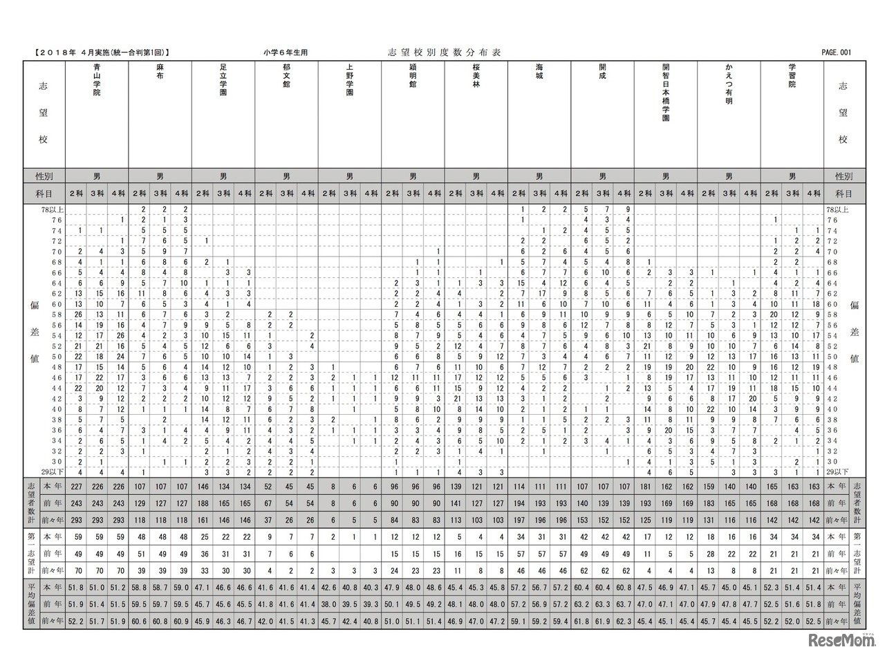 【中学受験2019】首都圏模試(4/15)小6度数分布表…第一志望者数や偏差値 2枚目の写真・画像