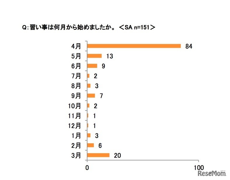 習い事は何月から始めたか:イー・ラーニング研究所調べ