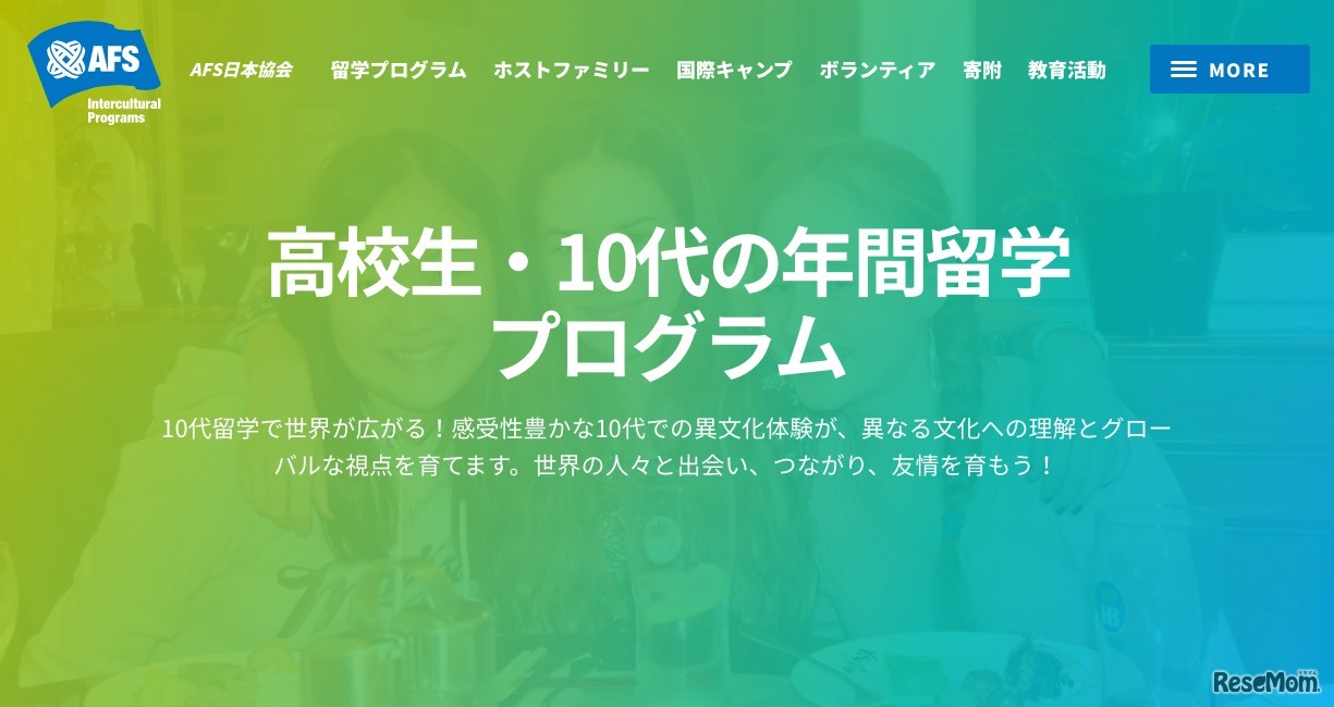 高校生の年間留学プログラムを実施するAFS日本協会は「AFS年間派遣プログラム(2019年出発・第66期)」においてさまざまな奨学金を用意し、高校生の異文化学習をバックアップする。奨学金申請にあたっては選考への出願が必要。一般選考A日程の受付は2018年5月24日まで。
