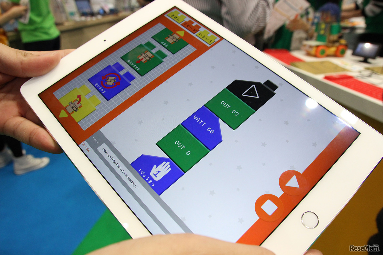 第9回 教育ITソリューションEXPO(EDIX)会場のようす 開発中の「ソビーゴ こどもロボットプログラミング」に対応するアプリによるプログラミング画面