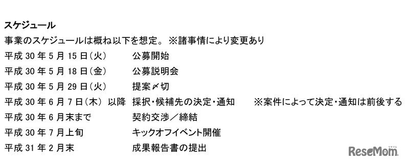 経済産業省は、「未来の教室」実現に向けた実証事業の実施にあたり、学びと社会の連携促進事業(「未来の教室」(学びの場)創出事業)の提案を平成30年5月29日正午まで募集する。
