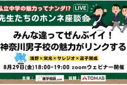 神奈川の全私立男子中学校が一堂に会する「神奈川私立男子中学校フェア2018」が栄光学園中学高等学校で2018年6月10日に開催される。参加無料で予約不要。個別相談や在校生によるパネルティスカッションなどを行う。