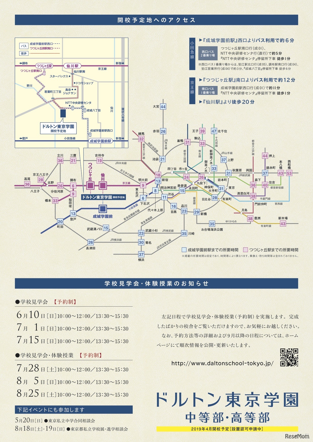世界各国で実践されている教育メソッド「ドルトンプラン」を取り入れた日本で唯一の中高一貫校「ドルトン東京学園中等部・高等部」が2019年4月の開校に向け準備を進めている(2018年5月18日時点:設置認可申請中)。6月からは学校見学会など各種イベントを実施。