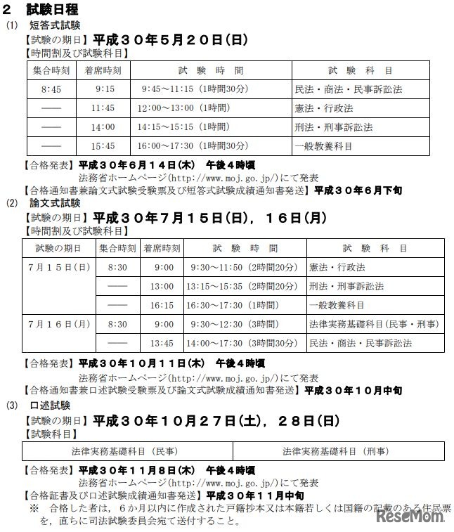 平成30年司法試験予備試験の短答式試験が平成30年5月20日、全国7都市の9会場で実施された。法務省によると、出願者数は前年比568人増の1万3,746人にのぼる。最終合格発表は11月8日。