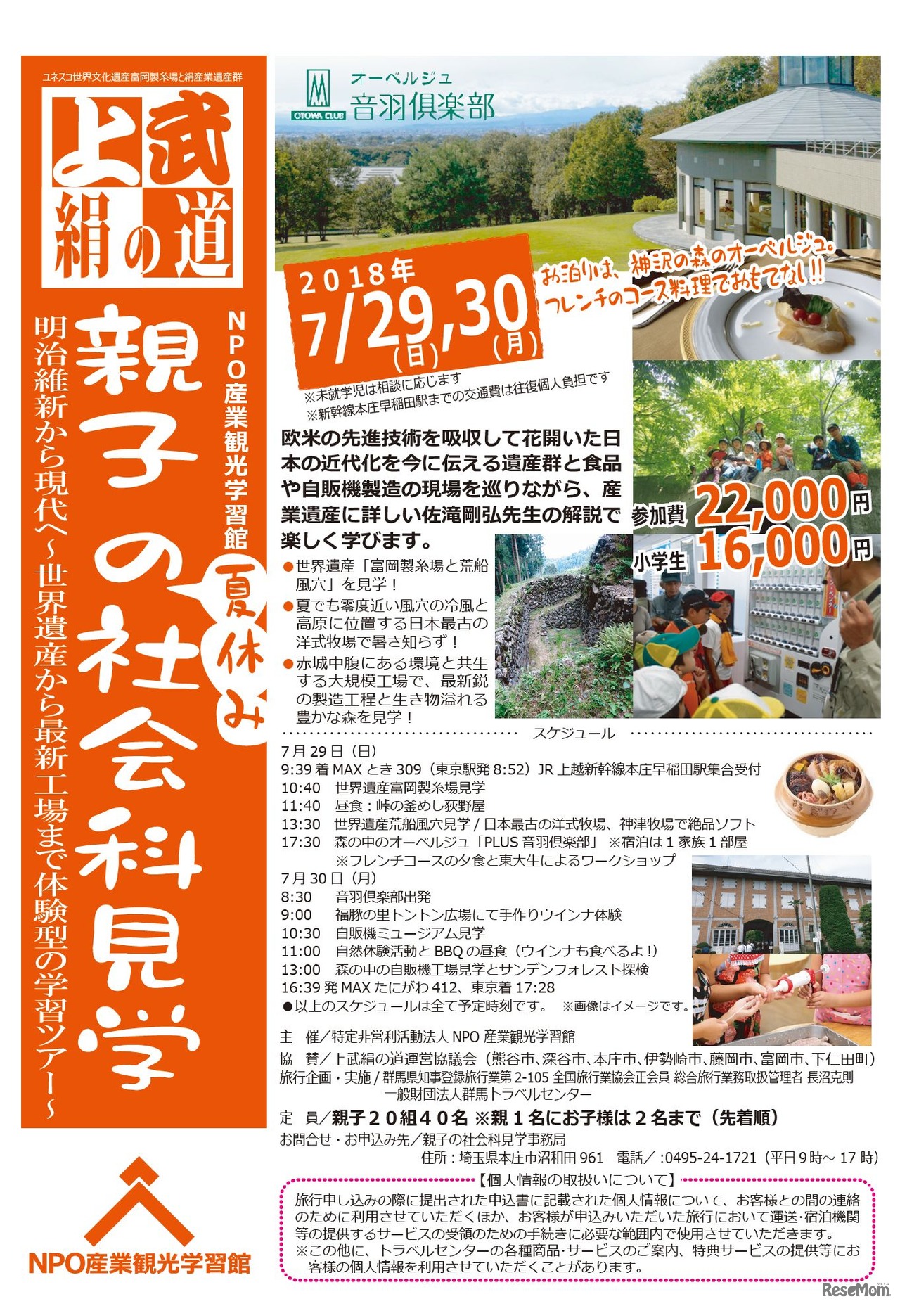 NPO産業観光学習館主催 2018年7月「上武絹の道 親子の夏休み社会科見学」 チラシ