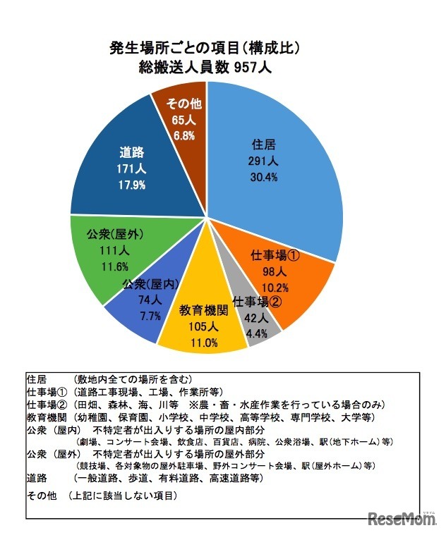 総務省消防庁は、平成30年5月14日から5月20日までの熱中症による救急搬送人員数の速報値を発表した。全国の救急搬送人員数は957人。前週の187人より大きく増加しており、福岡県で熱中症による死亡例も発生している。都道府県別の搬送人員数では、埼玉県の82人が最多。