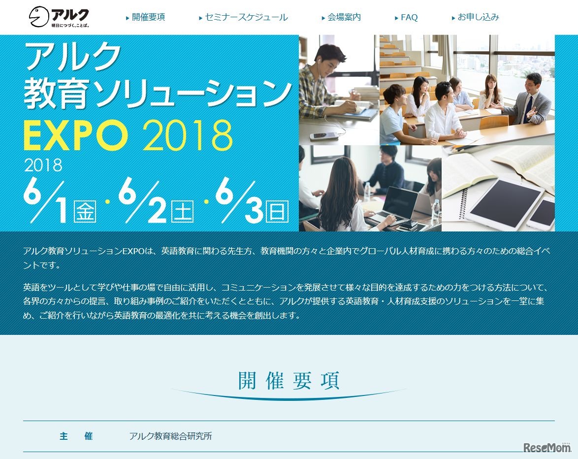 アルクは2018年6月1日から3日にかけて、英語指導者・教育関係者・企業人事教育担当者を対象とする総合イベント「アルク教育ソリューションEXPO 2018」を開催する。