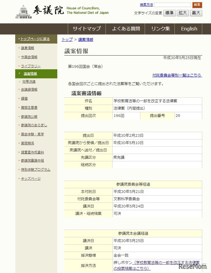 画像出典:参議院 参議院の議案情報(第196回国会)