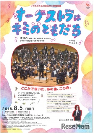 新潟市は、2018年8月5日にりゅーとぴあ(新潟市民芸術文化会館)コンサートホールで「オーケストラはキミのともだち」を開催する。チケット料金は、小学生500円、中学生1,000円、高校生以上は1,500円で、未就学児は入場不可。