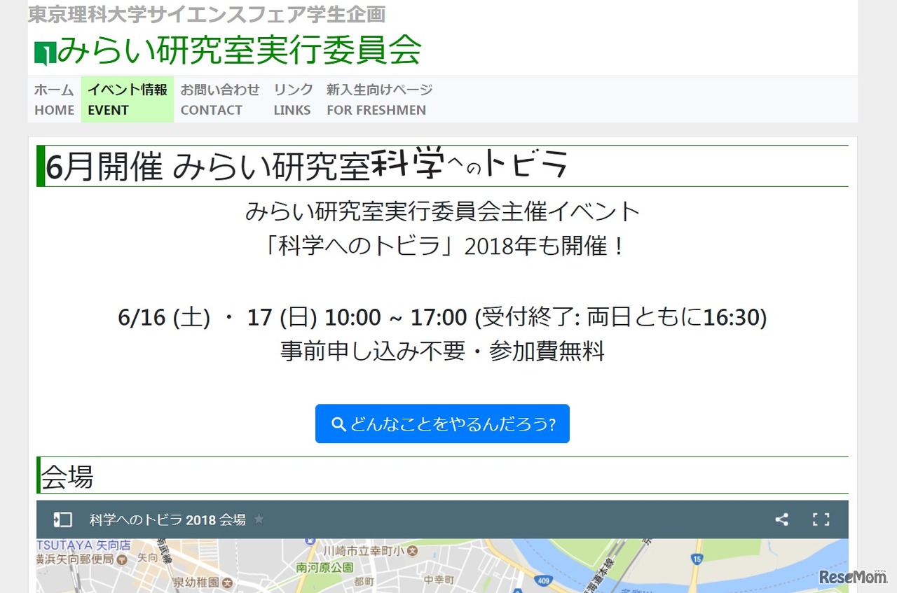 東京理科大学は2018年6月16日と17日、東芝未来科学館、ラゾーナ川崎プラザ、ミューザ川崎シンフォニーホール音楽工房で、小・中学生向け科学体験イベント「みらい研究室~科学へのトビラ~」を開催する。入場無料。事前申込不要。