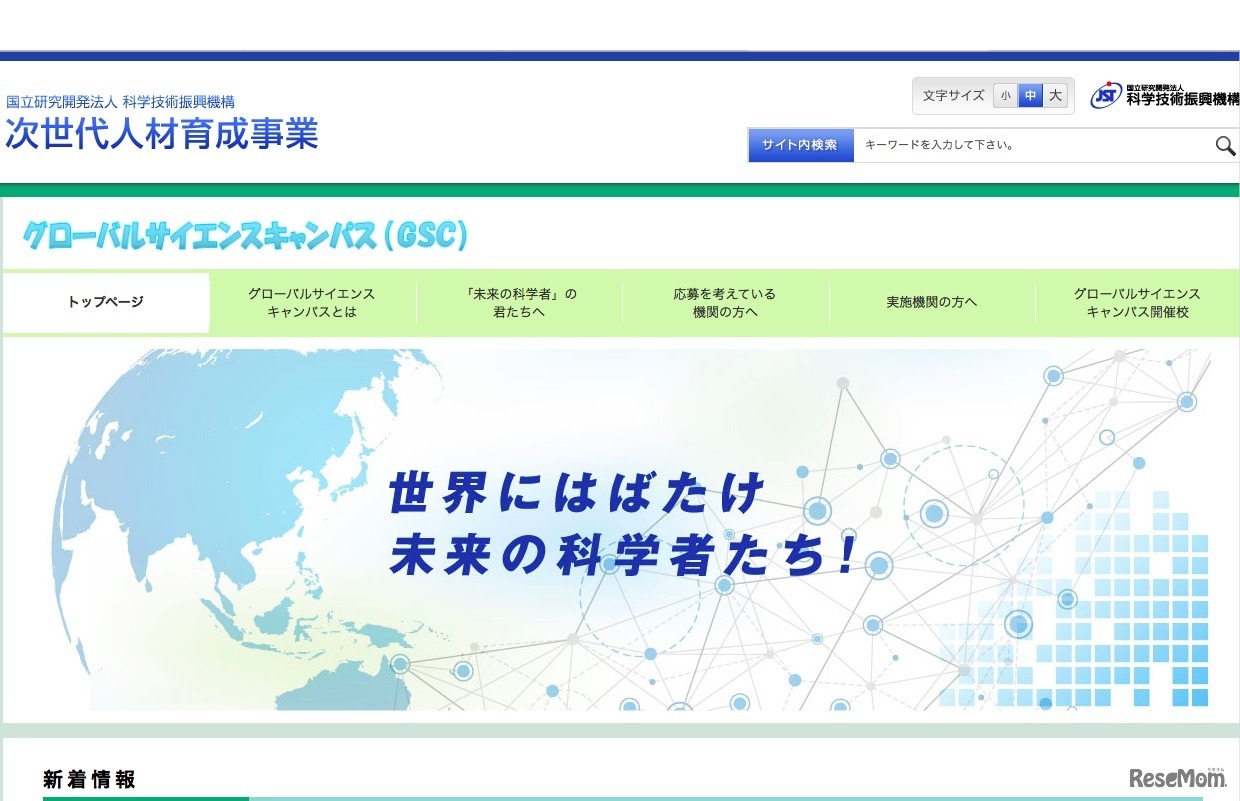 科学技術振興機構(JST)は平成30年5月29日、「グローバルサイエンスキャンパス」の平成30年度採択機関を発表した。応募15件から、東北大学の「科学者の卵養成講座」や慶應義塾大学の「医学・医療の学際的修学、半学半教」など6機関の企画が選ばれた。