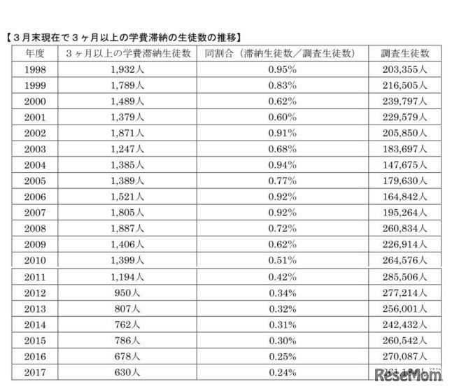 2017年度の1年間に経済的理由で中退した私立高校生の割合が0.03%となり、3年ぶりに増加したことが、全国私立学校教職員組合連合の調査結果より明らかになった。