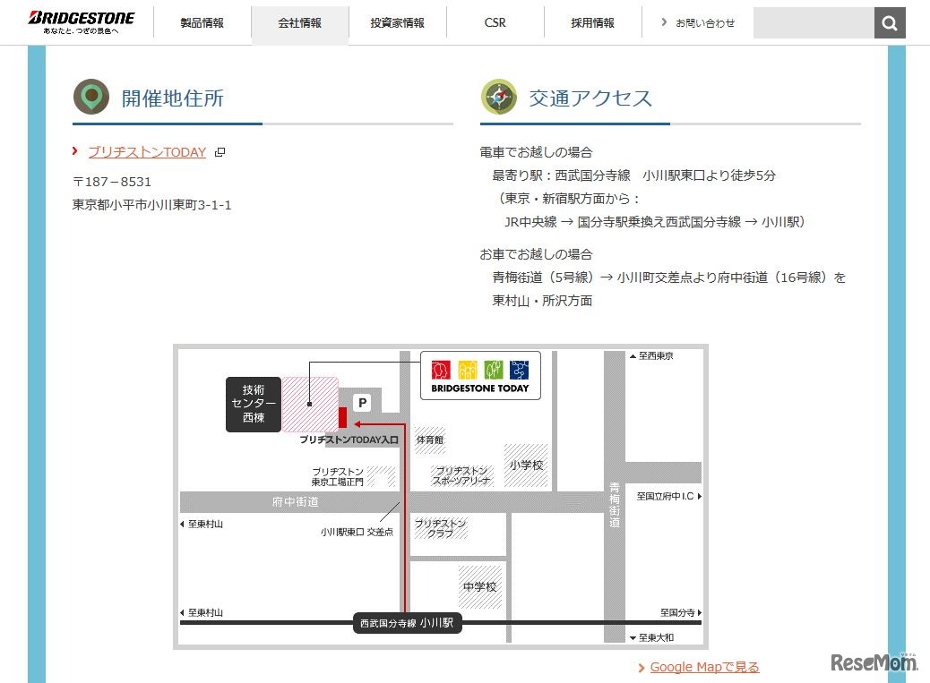 2018年  ブリヂストンが夏休みの宿題をお手伝い 「地震からみんなを守る免震ゴムのひみつ」実施場所と交通案内