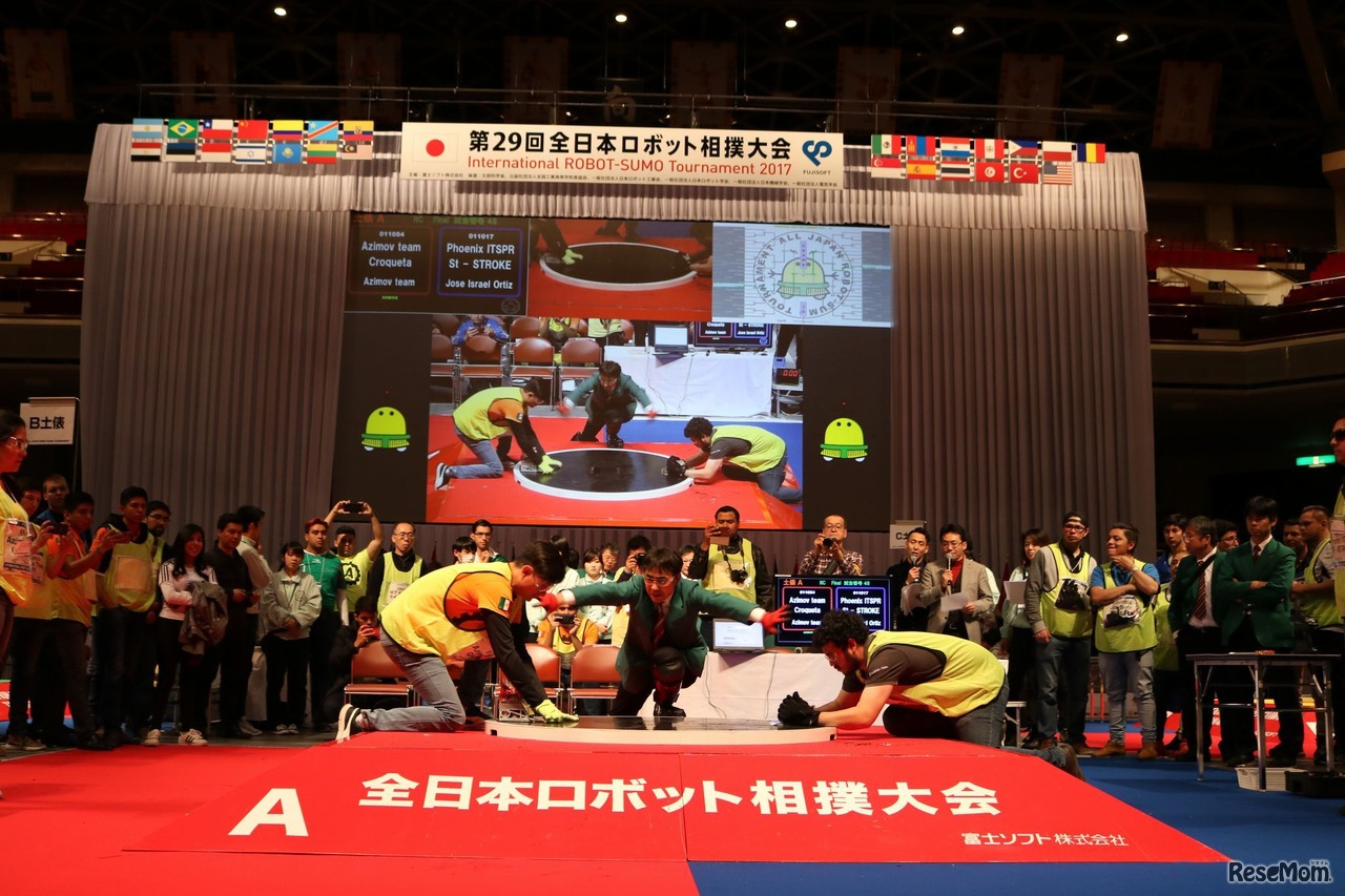 2017年に開催された「全日本ロボット相撲大会」世界大会 決勝戦のようす