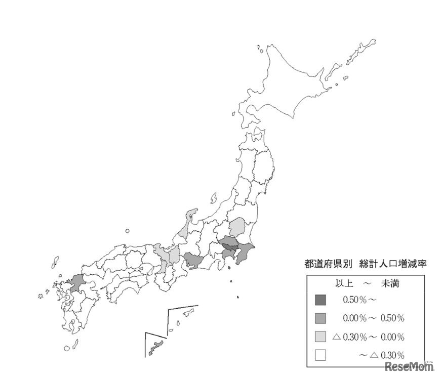画像出典:総務省 2018年7月11日「住民基本台帳に基づく人口、人口動態および世帯数(2018年1月1日現在)」 都道府県別 総計人口増減率