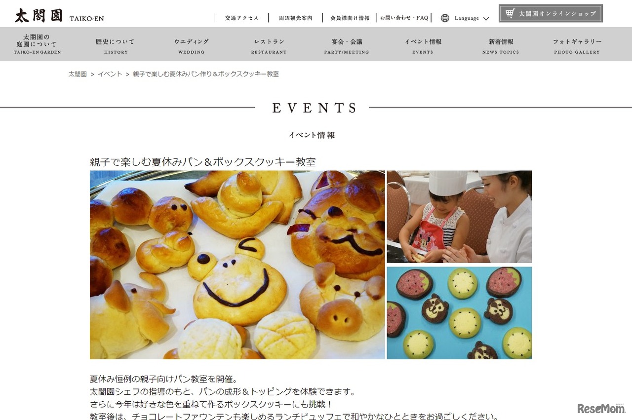 画像出典:太閤園 親子で楽しむ夏休みパン&ボックスクッキー教室