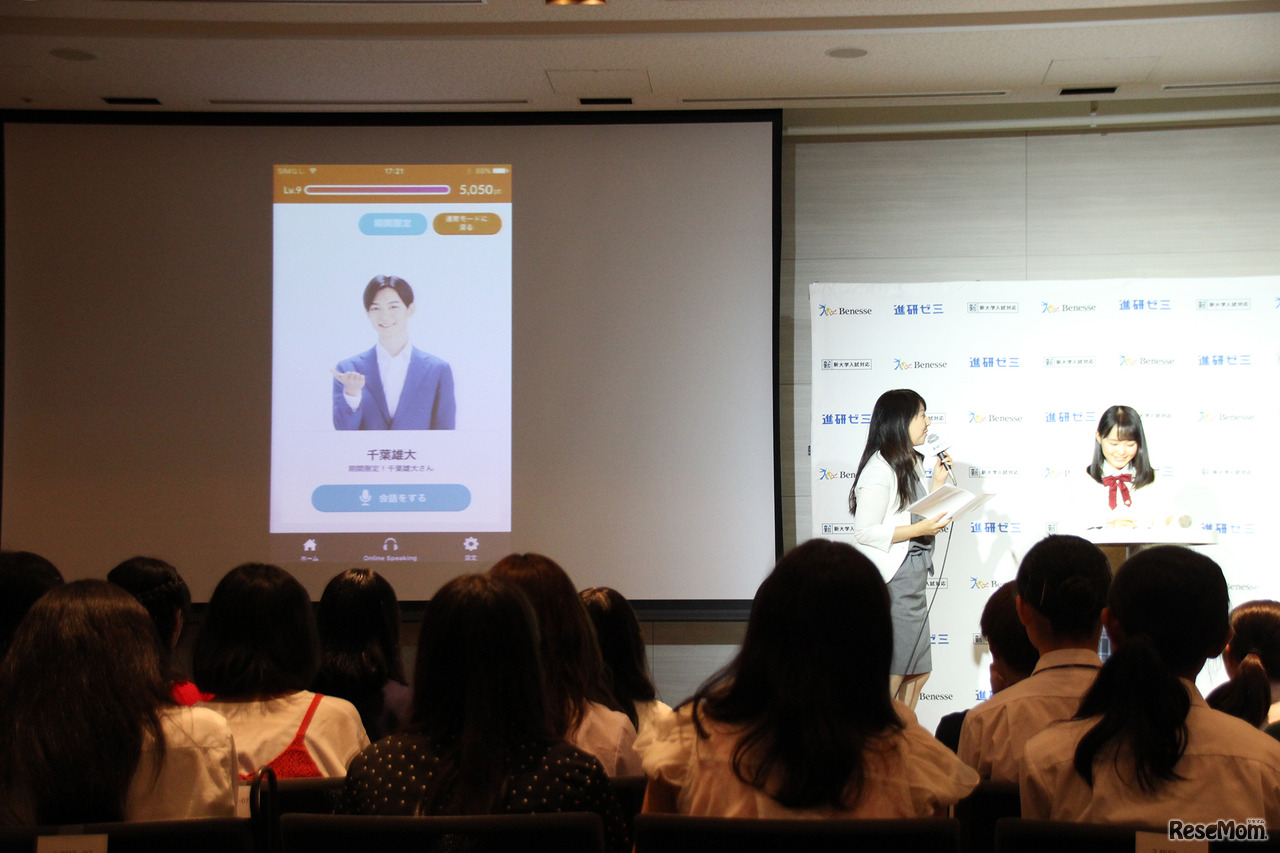 ベネッセホールディングスの子会社であるベネッセコーポレーションは2018年7月12日、東京都中央区で「進研ゼミ高1講座」新教材の英語スピーキングアプリに関する記者発表会を行った。