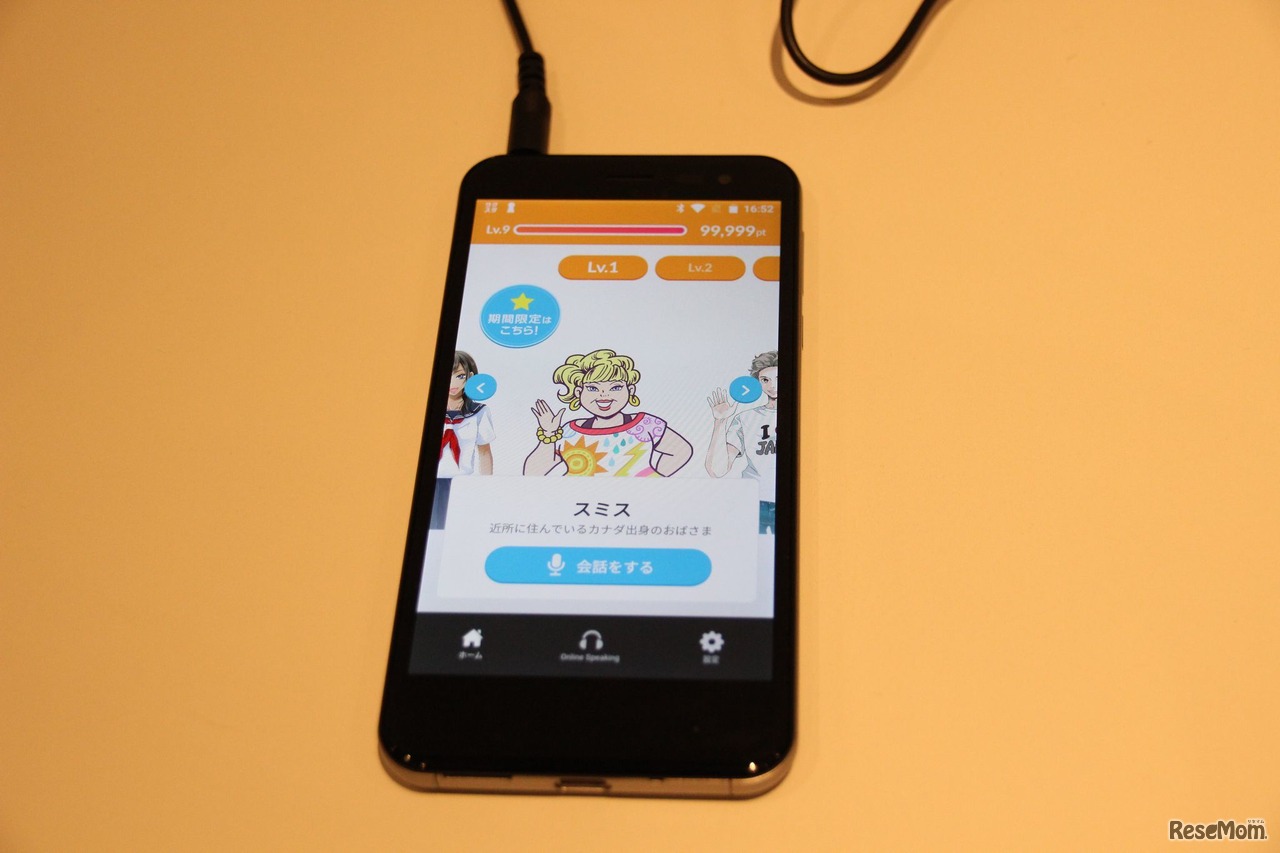「1分スピーキング」のキャラ選択画面。写真は、近所に住んでいるカナダ出身のおばさま、という設定の「スミス」。キャラは20種類以上用意されている