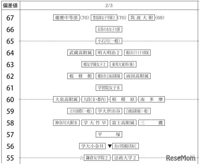 四谷大塚は、2018年7月8日に実施した小学6年生対象「第2回合不合判定テスト」の偏差値一覧を公表した。難関校の合格可能性80%偏差値は、男子が筑波大駒場(72)、開成(71)、女子が桜蔭(71)、豊島岡女子学園(70)など。