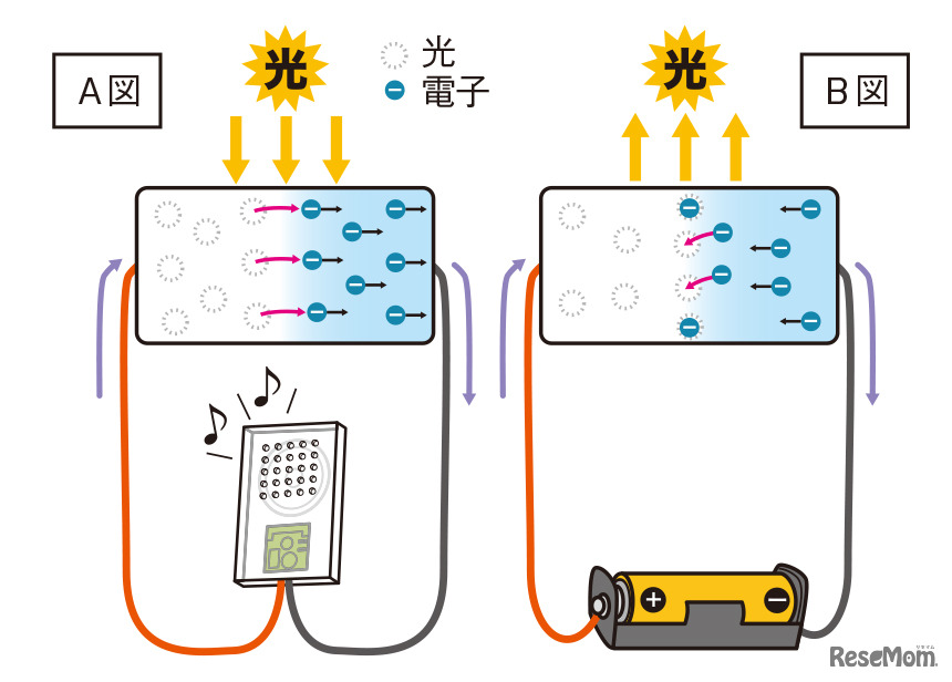 画像出典:永岡書店「自由研究 中学生の理科newチャレンジ」 太陽電池・LEDと電流・光の関係