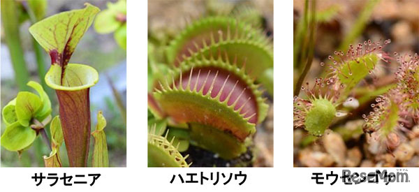 (左から)サラセニア、ハエトリソウ、ウツボカズラ、モウセンゴケ