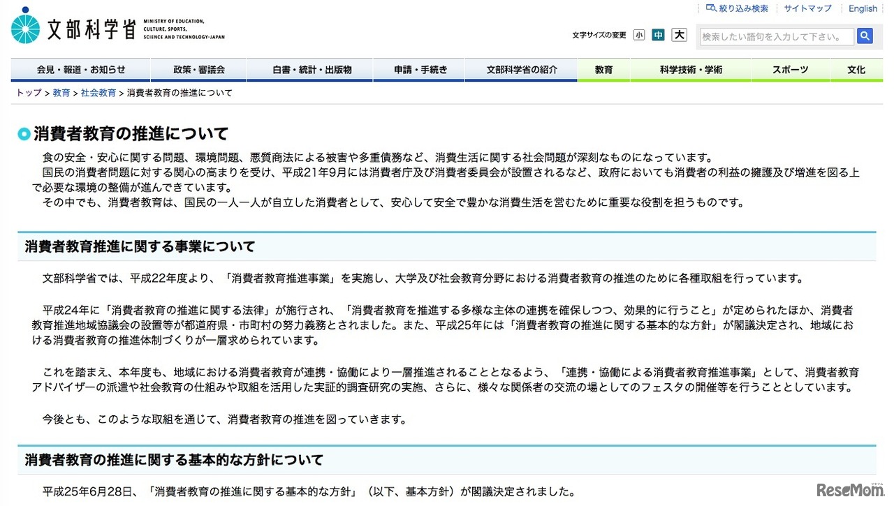 文部科学省は平成30年7月23日、成年年齢引下げなどを見据えた環境整備について、各都道府県・指定都市教育委員会や都道府県知事、国公私立大学長・高等専門学校長などに向けた通知を行った。消費者教育の推進や生徒指導・学生指導など、3つの留意事項をあげている。