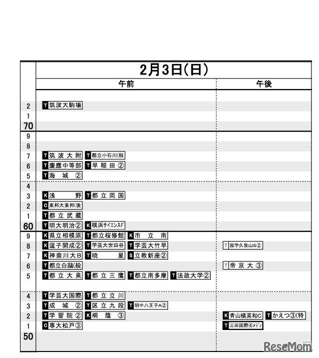 日能研「予想R4偏差値一覧」首都圏7月12日版・男子2月3日
